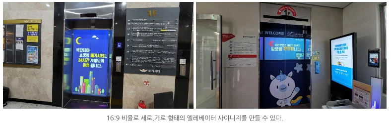 엘레베이터 광고는 다양한 역활을 수행하는데 내빈이 방문할때 웰컴 문구를 직관적으로 전달할 수 있고, 평상시에는 건물이나 회사 등의 게시판, 홍보의 채널로써 활용될 수 있다.