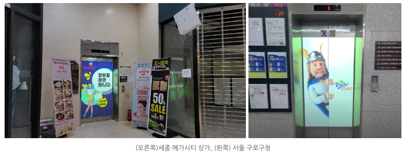 엘레베이터 문은 광고나 홍보를 할 수 있는 훌륭한 채널이다. 우리는 엘레베이터를 기다리는 동안무언가를 해야한다. 대부분 휴대폰을 바라보지만, 엘레베이터에 다가가서 버튼을 누르거나, 엘레베티어에 탑승을 해야할 경우 필연적으로 문을 바라보게 된다.