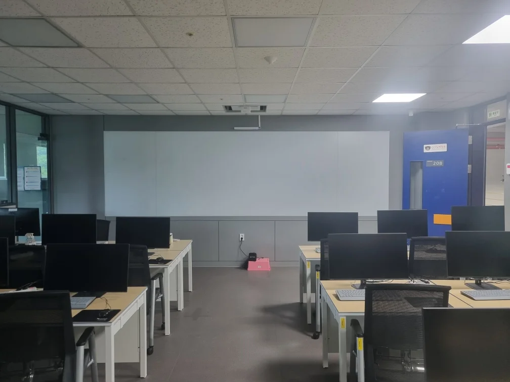 천안과학기술대학교(한기대)에는 하얀색 유리칠판과 모션 터치 기능이 가능한 초단초점 빔프로젝터가 설치되어 있습니다. 이러한 구성이 많은 학교에서 채택되는 이유는 크게 두 가지입니다.