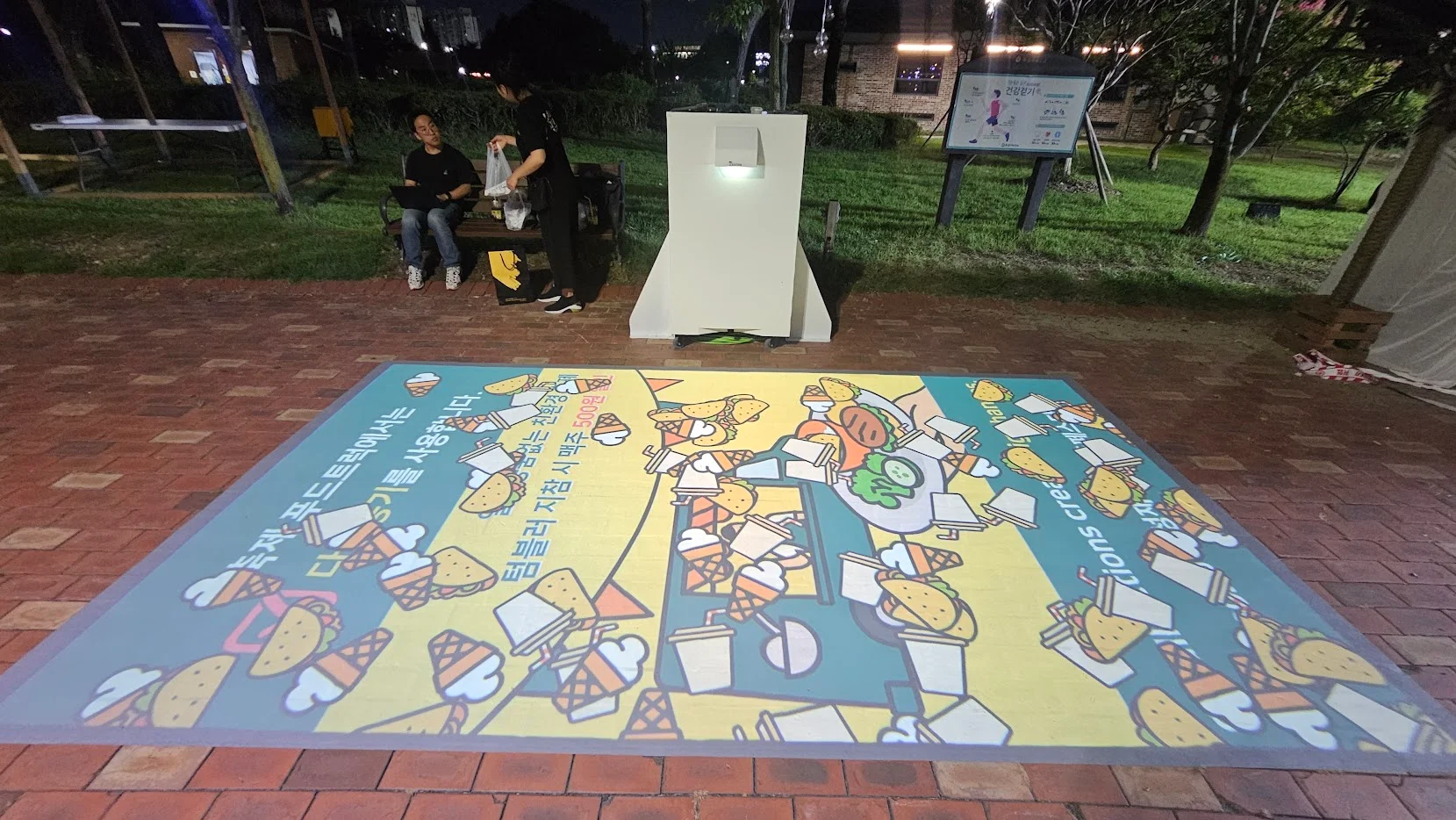 그동안 이프(이동형 프로젝션) 시리즈의 바닥 인터랙션은 프로젝션과 센서의 한계로 실내 공간에서만 사용할 수 있었습니다. 하지만 이번 유성 페스타에서는 처음으로 야외 전용 바닥 인터랙티브 키오스크가 개발되어 적용되었습니다.