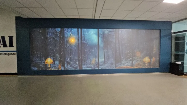 가로 7m 높이 3m 벽을 꽉 채운 영상을 만들어 달라는 요청을 받았습니다. 빔프로젝터와 벽면의 스크린이 만드는 영상의 크기가 커질수록 주변 밝기, 명암비, 화면크기, 콘텐츠 등을 아주 세밀하게 설계하지 않으면 매우 실망스러운 영상의 화질이 나올 수 있습니다.