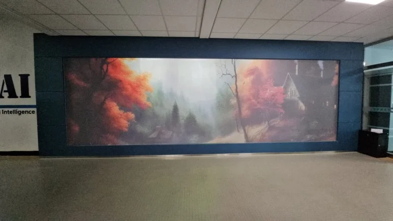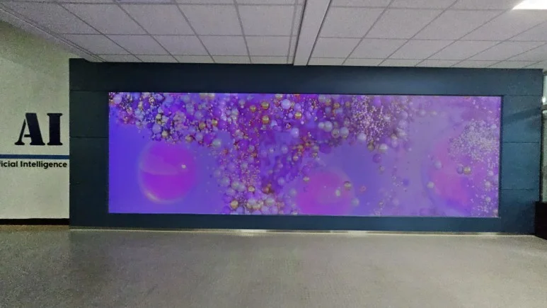 청주 공업고등학교 안 한쪽 벽면이 미디어월로 완성되었습니다.