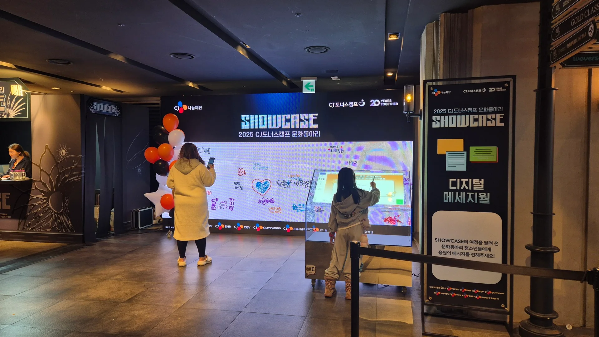 2025년, 젊음과 열정이 가득한 CJ도너스캠프 문화동아리 행사가 용산 CGV에서 성대하게 열렸으며 (CJ도너스캠프는 CJ CGV와 CJ 그룹 계열사로 연결되어 있습니다), 이 자리에페인트팜의 이동형 프로젝션(투명 전자 방명록)이 특별한 환영의 장을 열 수 있는 기회를 얻었습니다.