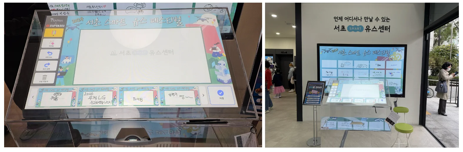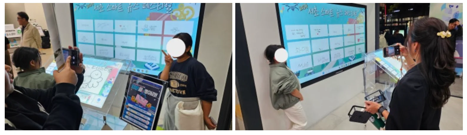 투명 전자 방명록 앞에서 추억을 남겨요.(feat. 서초 스마트 유스 페스티벌)