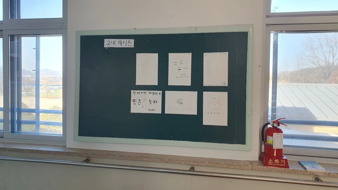 오늘 소개할 공간은 홍성 금마중학교의 복도 벽이다. 무심코 지나갈 수 있는 벽면이었지만 꼭 이런 곳들이 눈에 들어온다.