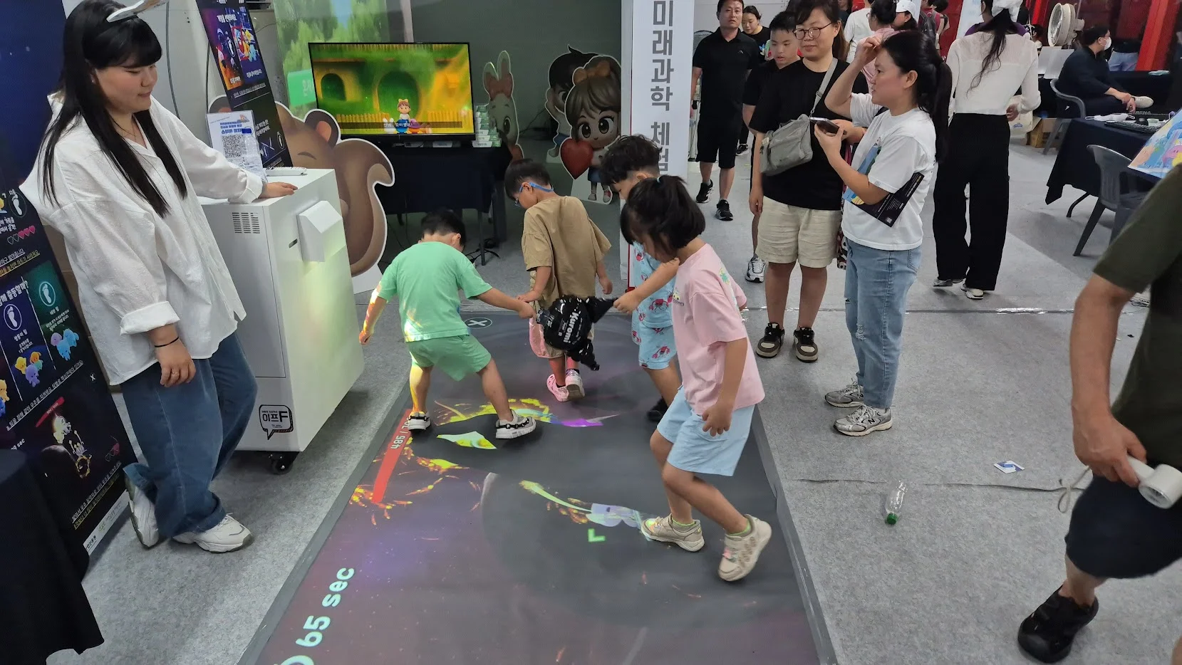 이프F는 바닥형 인터랙티브 장치로, 방문객은 바닥 위에서 바로 뛰고 밟으며 게임에 참여할 수 있습니다. 단순한 동작만으로 협력과 경쟁을 경험할 수 있습니다. 특히 게임 속에는 대전 캐릭터 꿈씨페밀리가 등장해, 지역성과 축제성을 동시에 담아냈습니다.