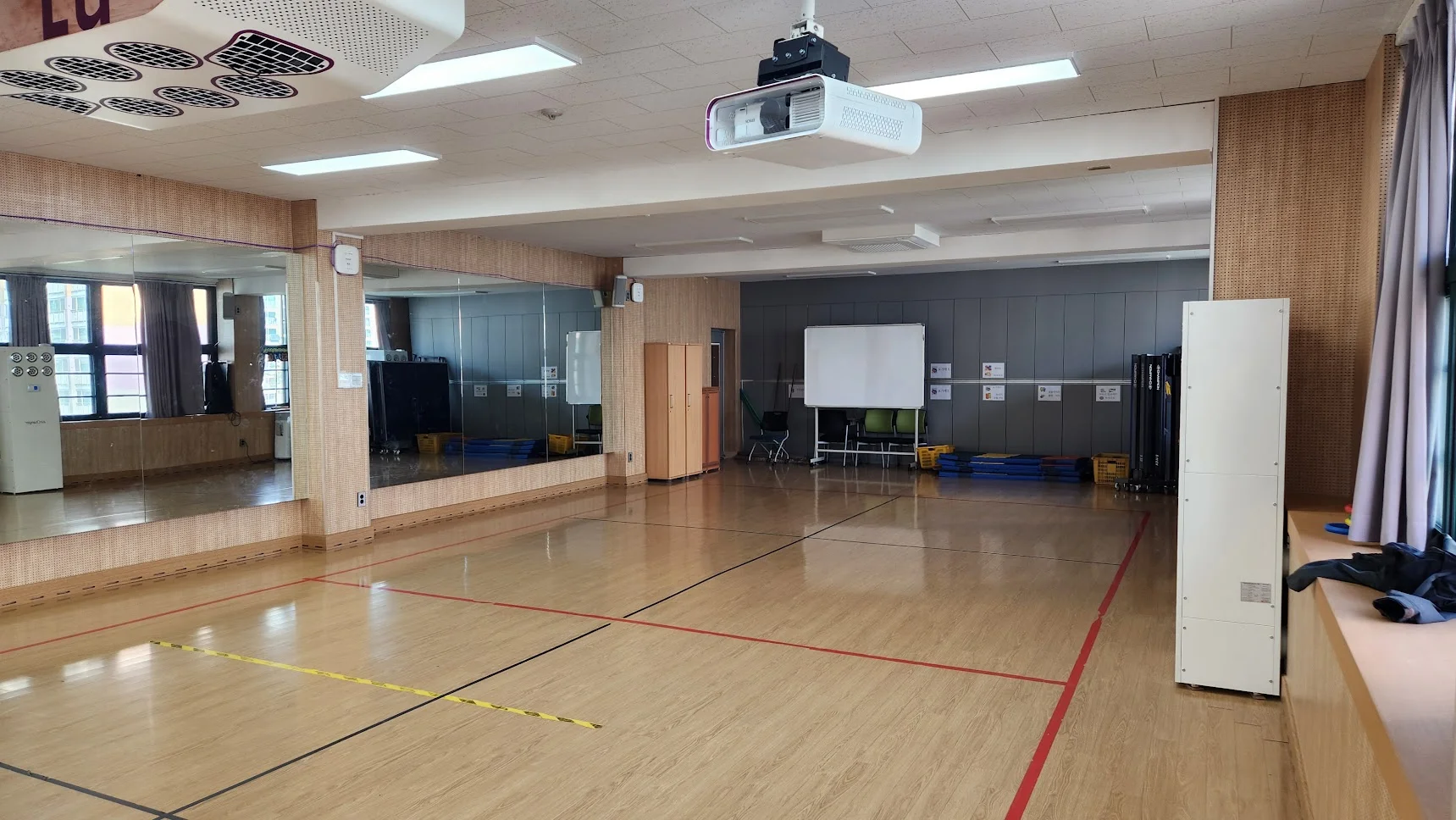 오늘 소개할 공간은 서울 문백초등학교의 강당 공간입니다. 이곳은 체육 활동과 시청각 교육이 모두 가능하도록 설계된 공간으로, 프로젝션 맵핑과 3면 스크린을 활용하여 몰입감 높은 시청각 환경을 구현했습니다.