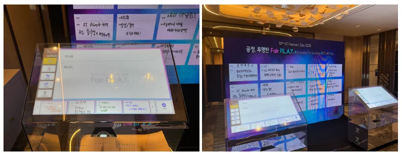 투명 디지털 방명록을 활용하여 기업행사 대행 퍼포먼스를 높이다(KT Partner’s Day)
